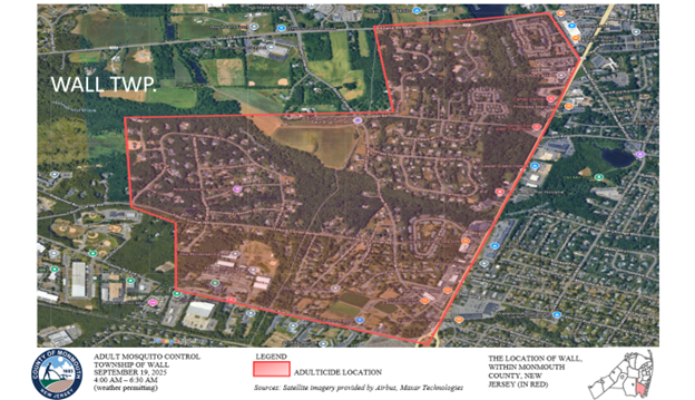 operation in Wall Township on Sept. 19 between 4 and 6:30 a.m., weather permitting, due to evidence of West Nile